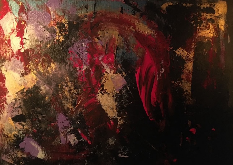 移住という環境の変化を起点に、自身の内面と外部世界の境界線をアクリル画で表現する。