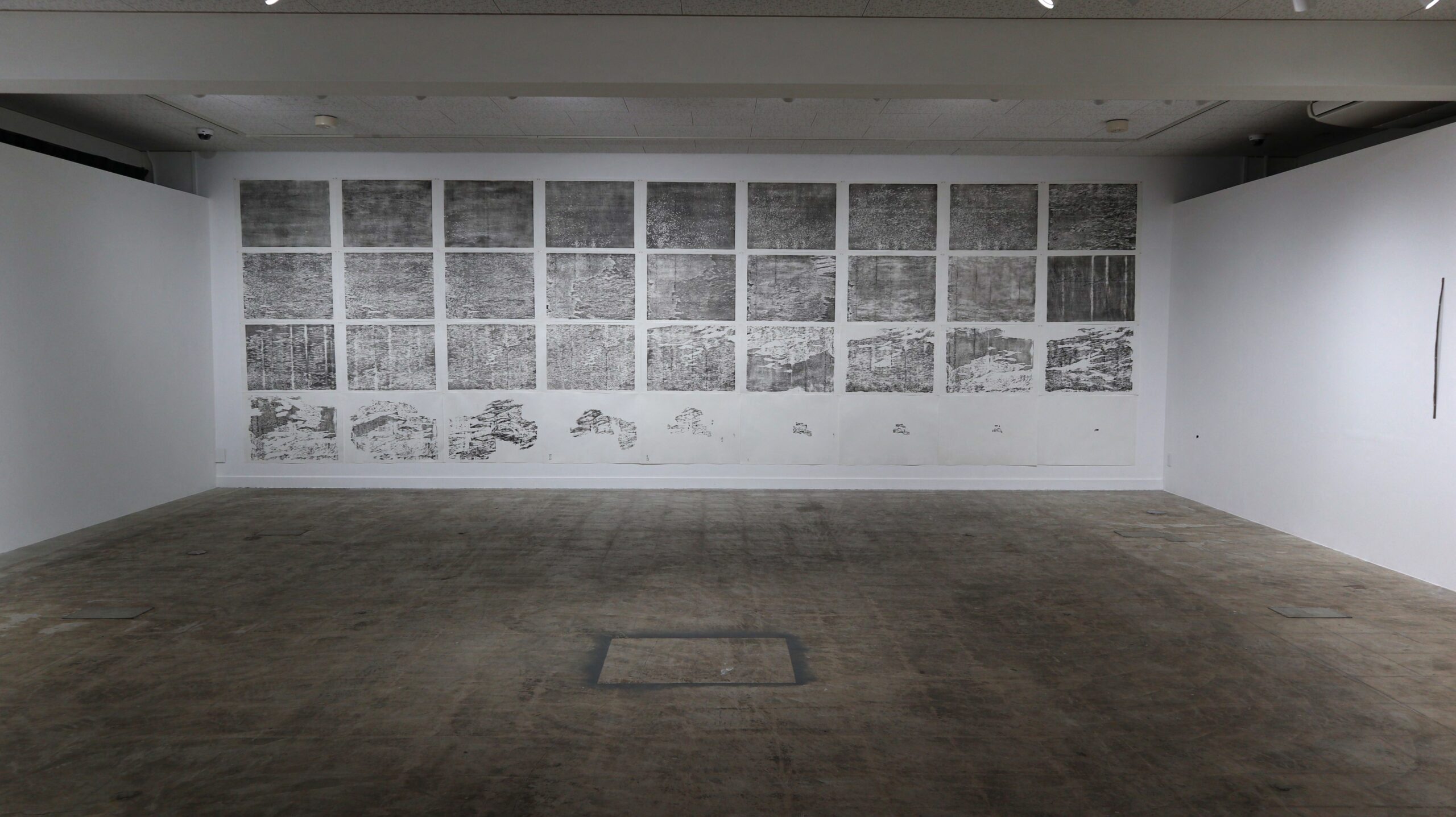 何かが在ること。それを知覚していることは私とその何かの間に距離が生じていることでもある。その距離の可視化を試みることは、自身の存在を対象化する試みとも言えるのではないだろうか。そのような感覚をもとに、私の視点から周囲の事象を捉えることを試みている。現在は、一つの屑がある地点から別の地点への移動により生じる重さや時間の変化に興味を持ち、版画の手法で制作している。