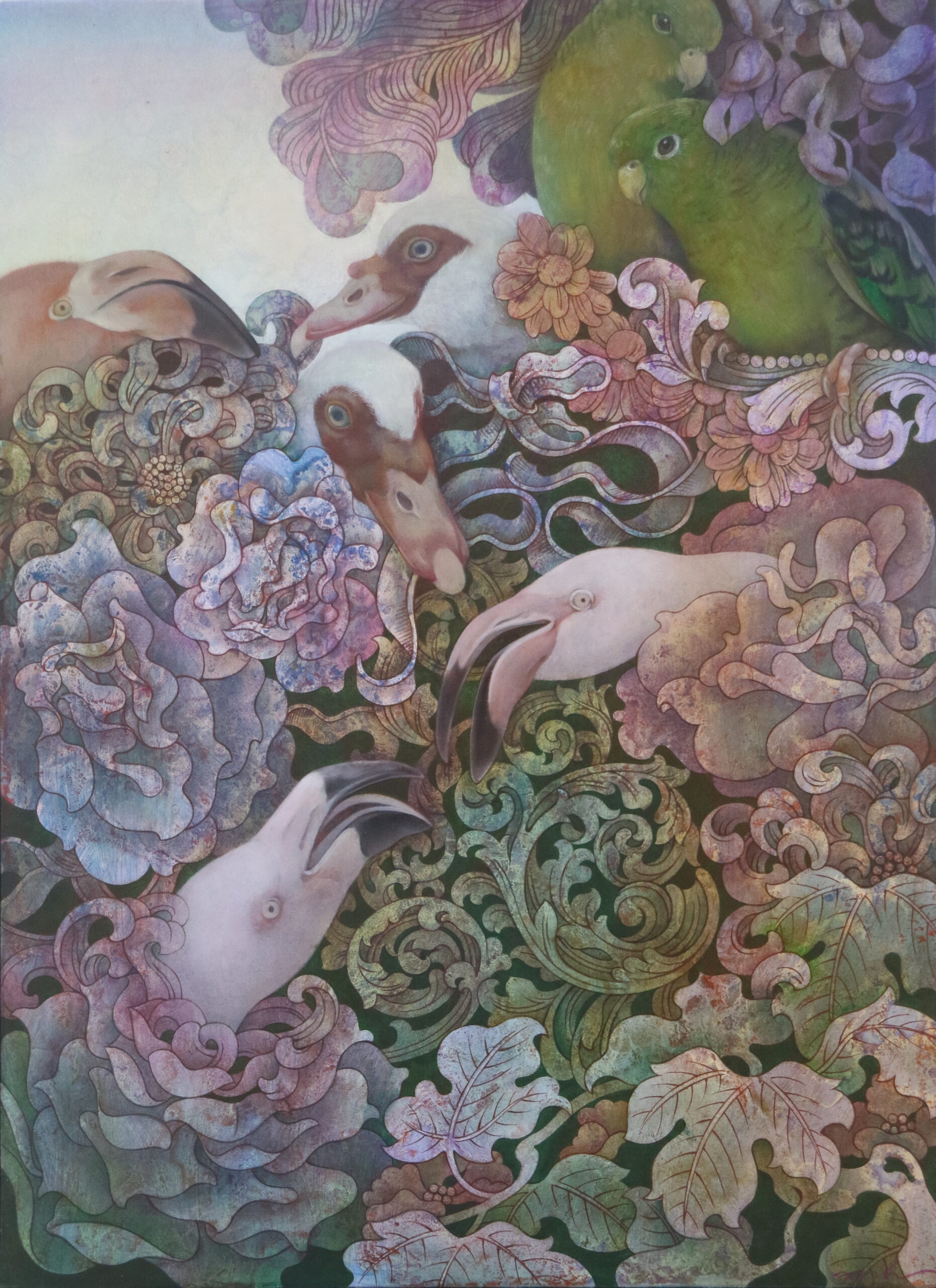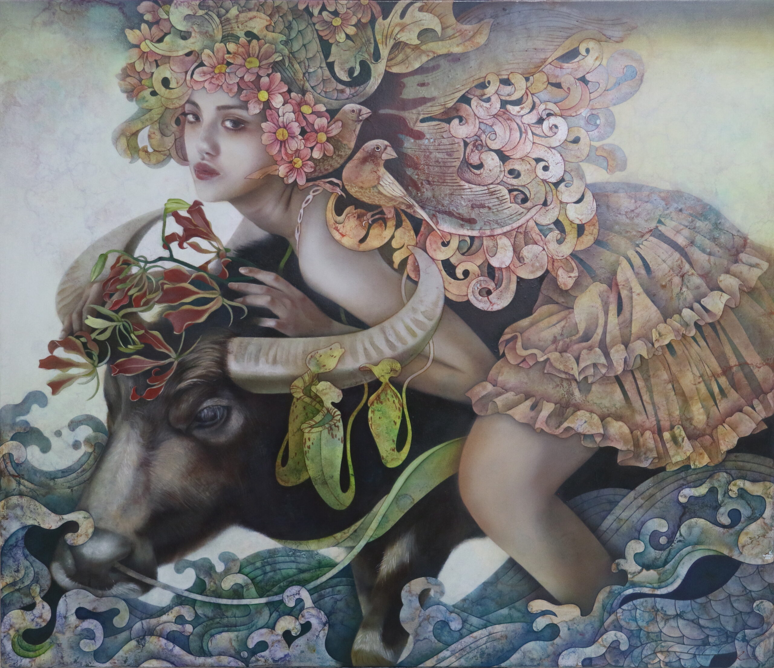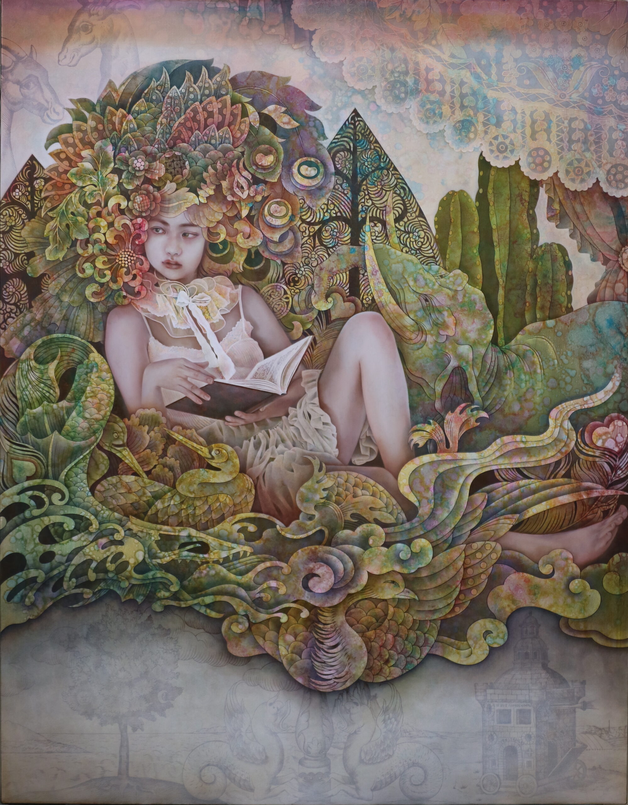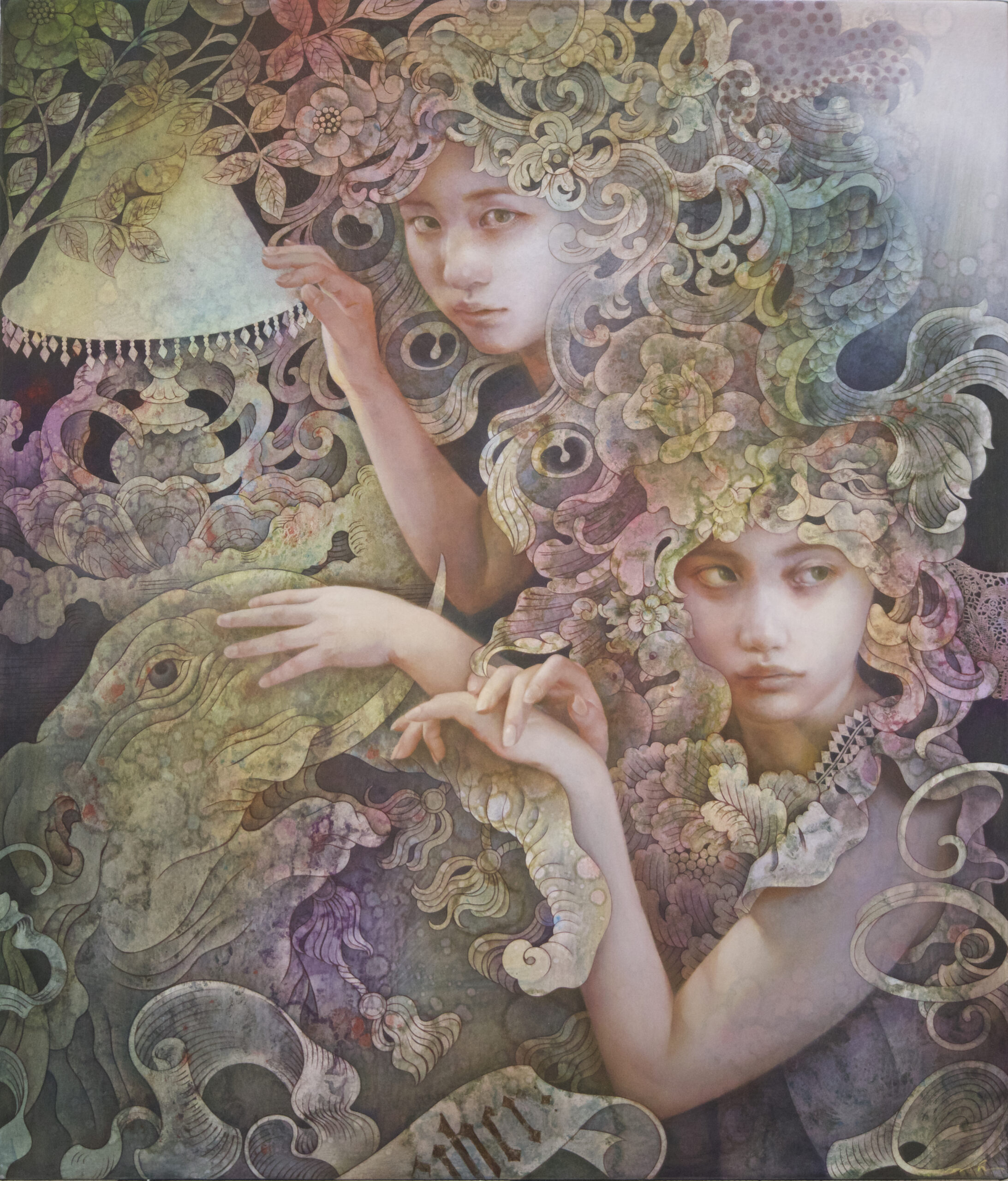 学生時代は銅版画を制作し、現在は油彩画で主に女性像を描く。儚く脆い、けれども強く美しい女性像を一歩下がった視点から、愛を持って描きたい。