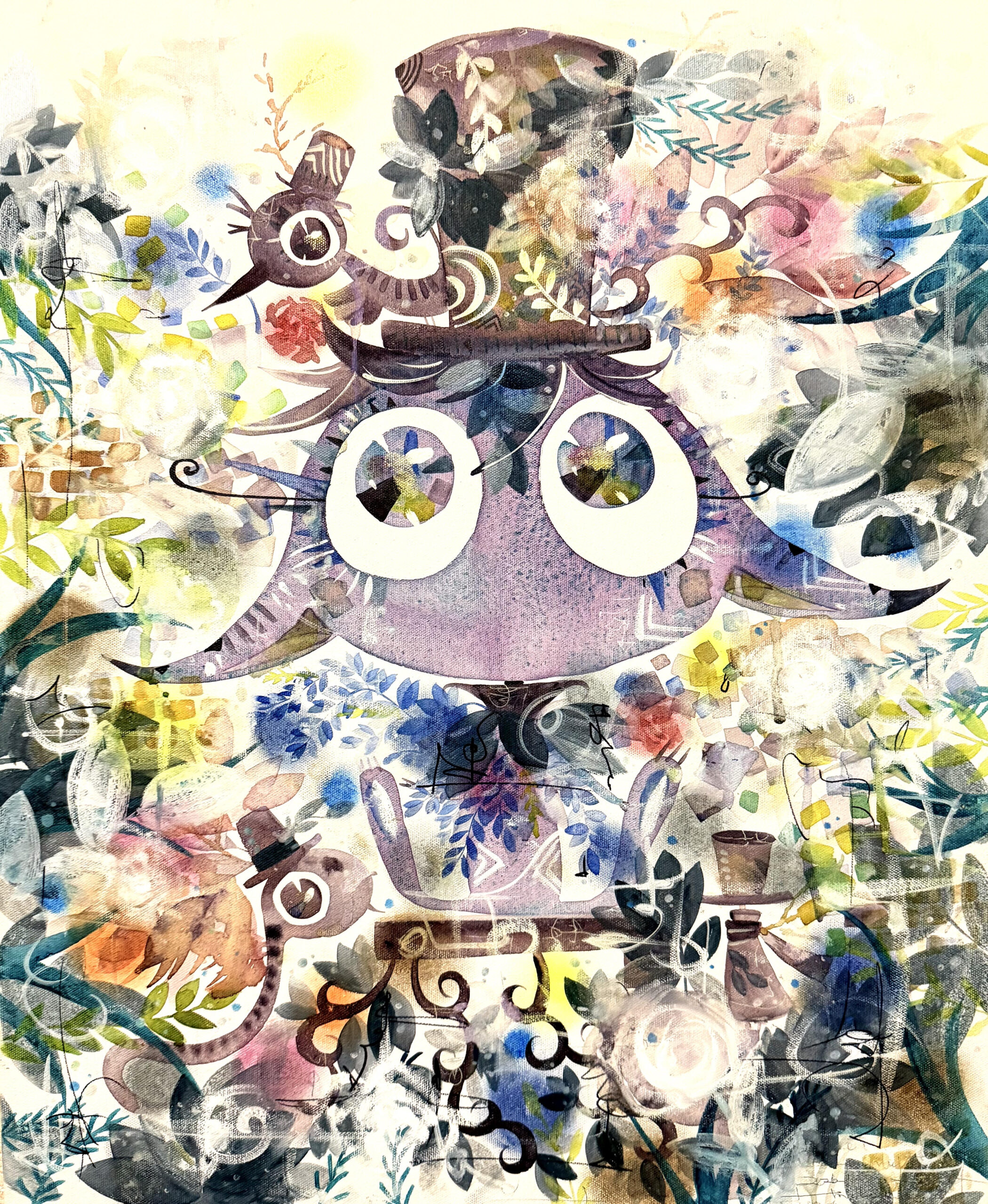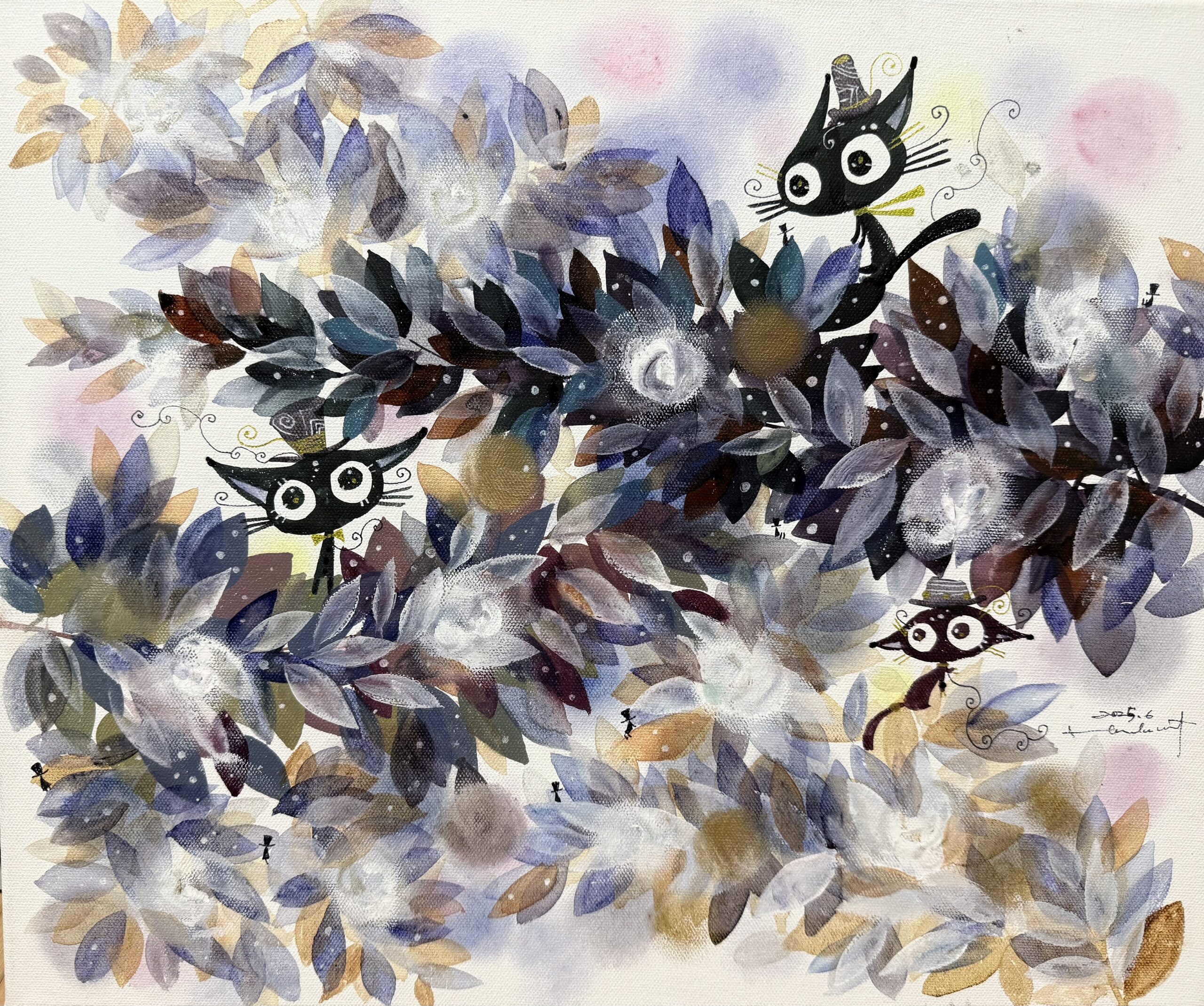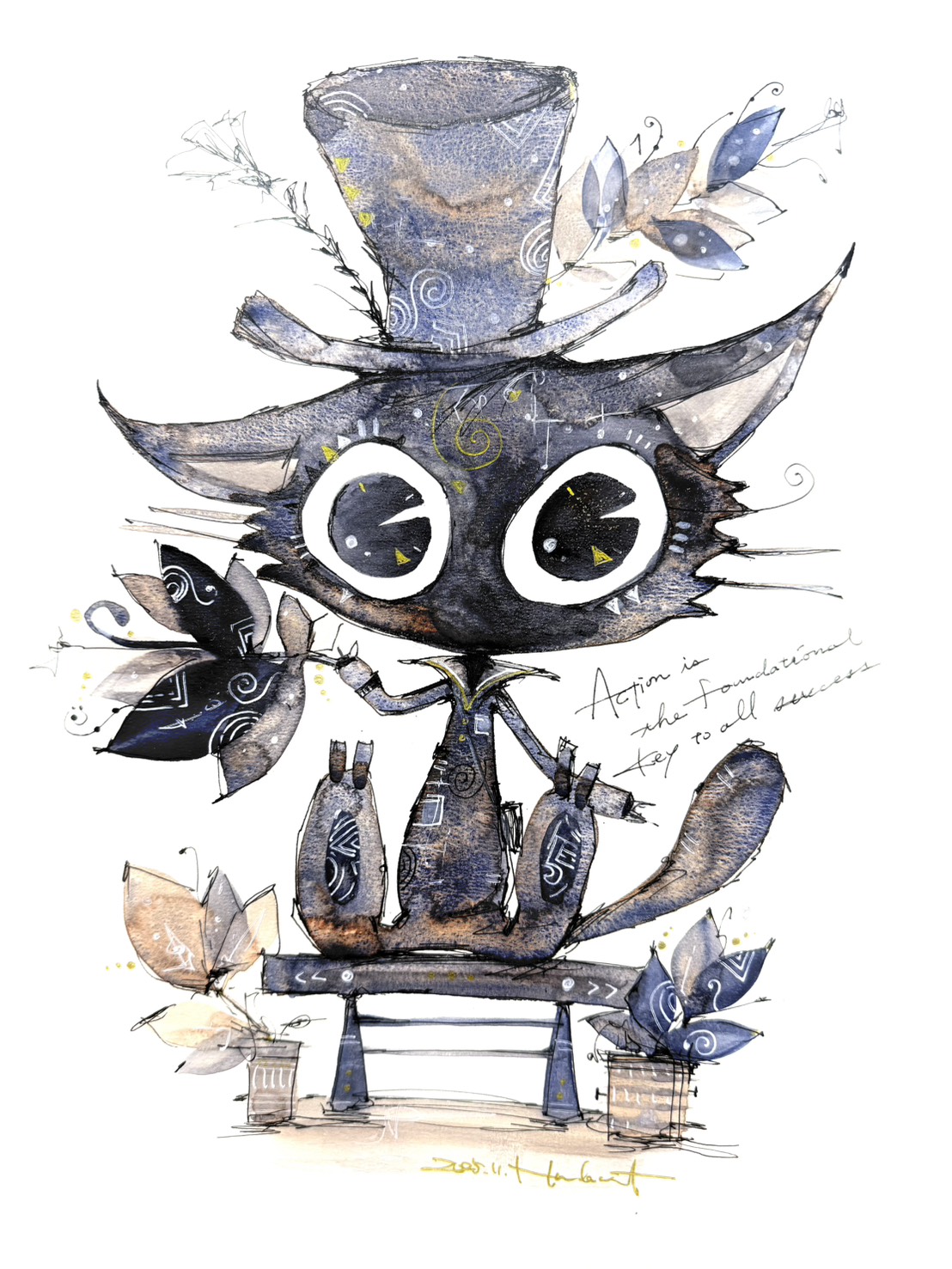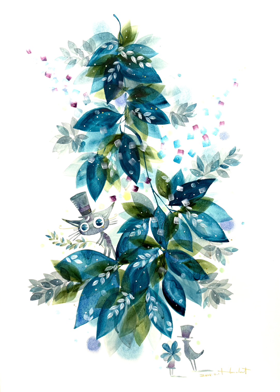 この不可思議で可愛い猫と水彩の世界を是非、お楽しみください。
