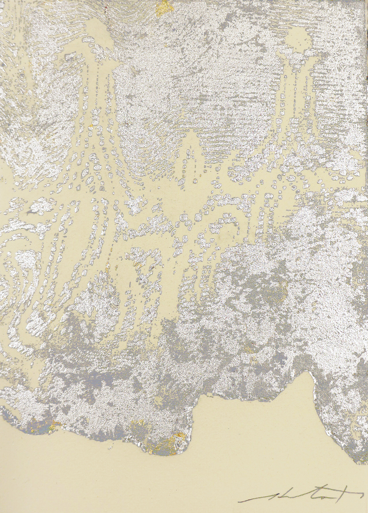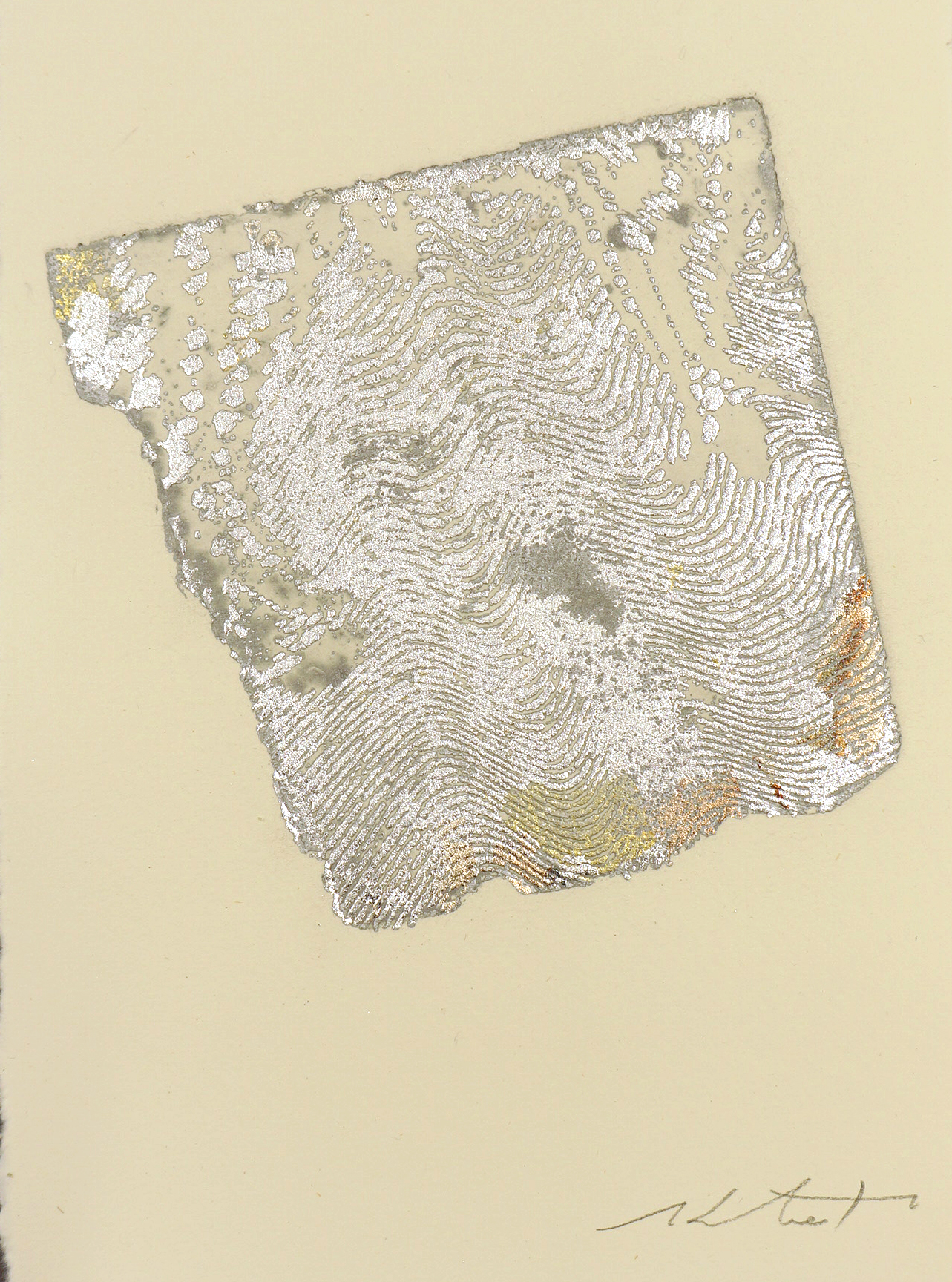 「何気ない こころに残る時間」をテーマに、銅版画(凹版画)を中心に、版画技法を用いて制作。レースなどをモチーフに「境界」として位置づけ、手前と奥の時間のズレを表現しています。それぞれの瞬間が独自の時間軸を持ち、時間が一様に進行せず、異なる時間日が共存している感覚。時間の流れの不均質性、時間と空間の関係性を問いながら、静かに世界を捉えたいと思い形にする事で視覚化しています。