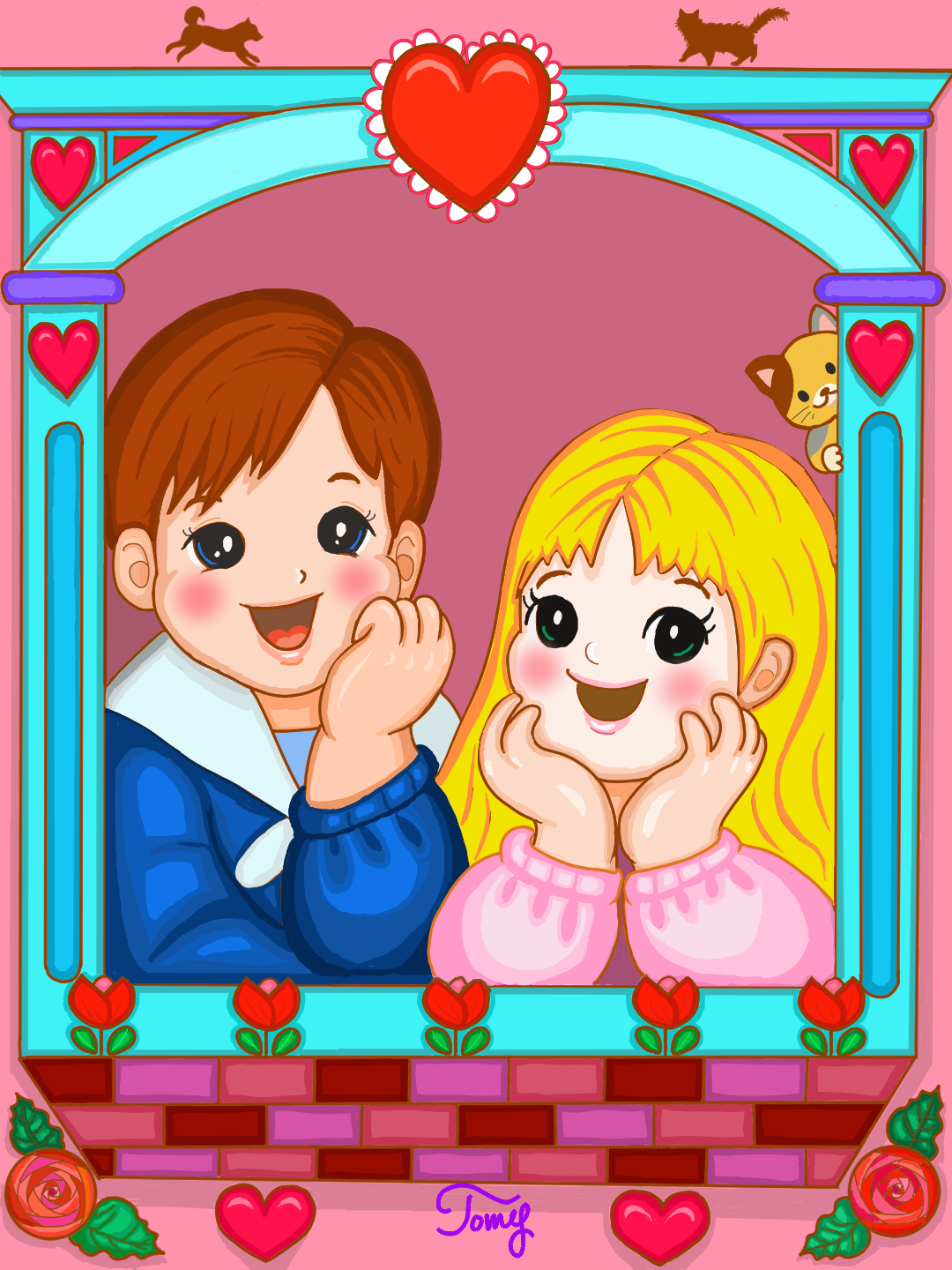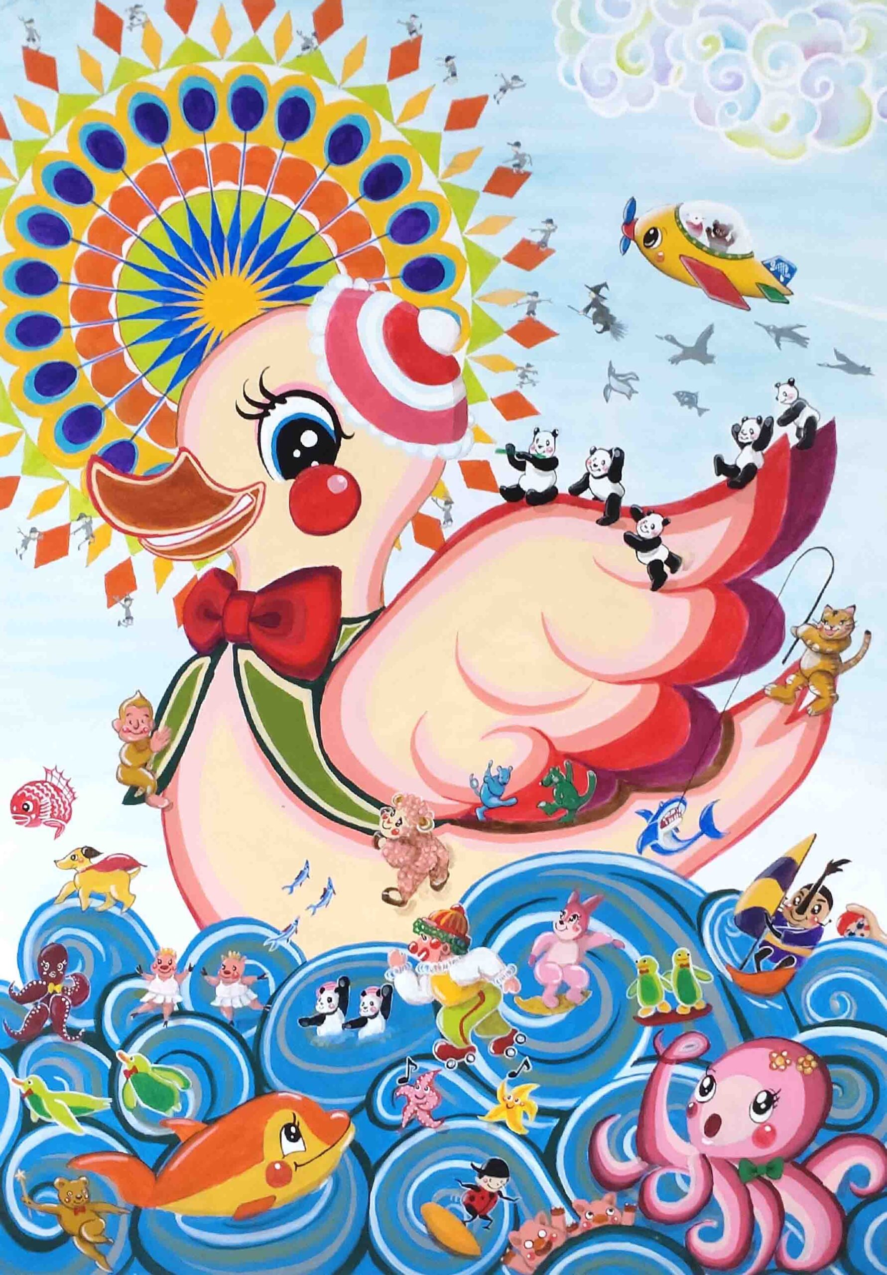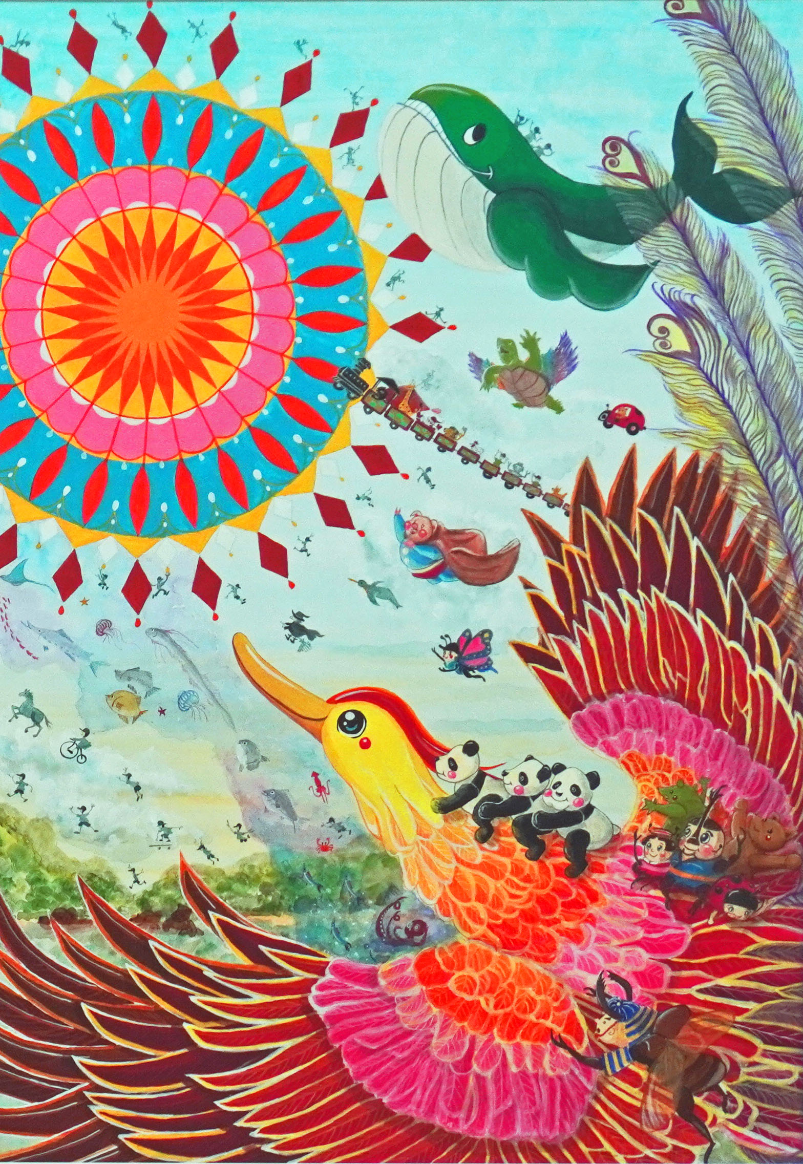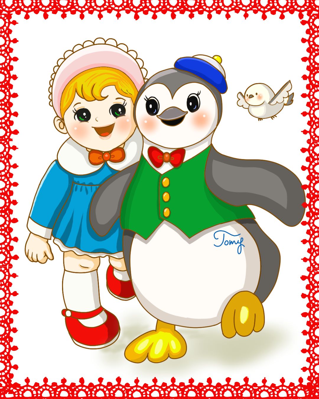 こどもの頃に感じた懐かしい色の配色をイラストに込めています。ビタミンカラーでレトロポップなおもちゃの国を描いてます。